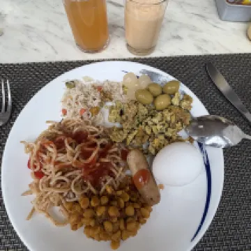 Grande chambre confortable et bien équipée, qui accuse par contre un peu le poids des années (belle de loin, un peu moins de près), sans que ça ne gâche l'expérience. Petit déjeuner très varié et bon. Cadre agréable. Personnel moins insistant qu'à Chennai.