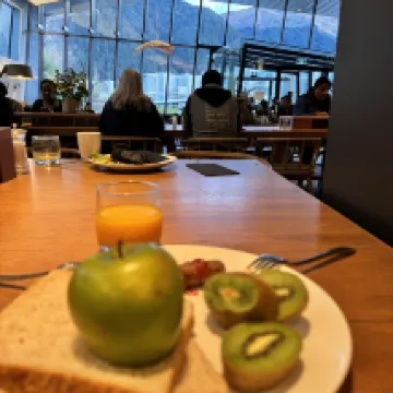價格不算便宜,但是在皇后鎮算比較平價的酒店了。早餐能吃,種類不多,勝在免費。去市中心有一個長下坡,意味着回來需要走一個長上坡,比較累。