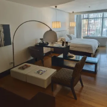 good surroundings, taxi station across the street but 20 min walk form metro station, a lot of dining places around and a big commercila mall wothin 10 minutes walking, room equipment is OK.