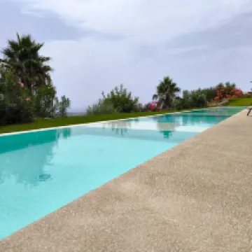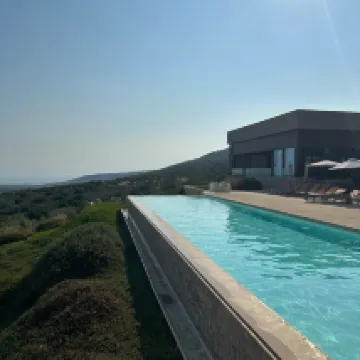 Die Unterkunft hat einen schönen langen Pool, von wo man einen wunderbaren Blick bis zum Meer hat. Es gibt allerdings behebbare Mängel: der Pool war erkennbar morgens nicht gereinigt, auch am Nachmittag nicht. Frühstück wird bis 10.00 Uhr angeboten, ab 09.20 wurde keine aufgeschnittenes Obst und Toast mehr nachgelegt. Am Sonntag hatte eine Hochzeit stattgefunden auf einer weiter unten gelegenen Terrasse. Überbleibsel davon wie benutzte Plastikbecher waren am Tag 2 danach noch nicht eingesammelt vom Boden. Wir hatten die sogenannte „Spa-Suite“, die sich in separatem Häuschen über Treppen oder Schotterweg erreichbar befindet. Eine winzige Dampfsauna dabei, die wir nicht benutzt haben. Vermutlich aber Gäste vor uns, denn die Bettwäsche fühlte sich leicht feucht an , wurde nach Beschwerde am nächsten Tag noch mal komplett gewechselt. Trotzdem würde ich dies nicht noch als buchen.