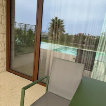 Mooie omgeving, lekker ontbijt. Een mooie studio ,met prachtig groot terras en fantastisch uitzicht. Vriendelijke bediening . De akoestiek in de nieuwe ontbijtzaal zou misschien kunnen verbeterd worden. Wij komen zeker nog eens terug.