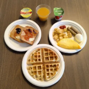 挺不錯的,就是酒店毛巾太舊了,發黑了,需要自帶浴巾毛巾。早安還行,可以自己做華夫餅
