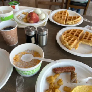 寵物友好酒店,可以帶寵物入住,早餐也不錯,前台很友善,給了延遲退房到下午2點,房間很暖和,位置離市區稍微遠一點,適合自己開車過來~