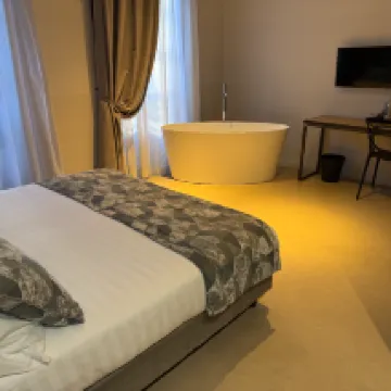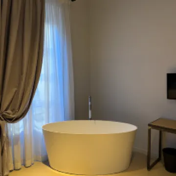 The room was of a good size and well-equipped e.g. towels, tea and coffee making facilities, a small fridge (with optional mini-bar), a television and a bathroom - with an excellent free standing bath tub in the centre of the bedroom.