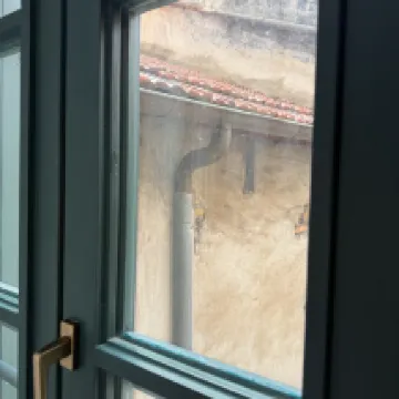 Our two windows looked out onto a gutter on one side and an adjacent building on the other.