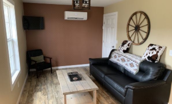This is a cabin getaway with a genuine farm vibe. Here you will often spot our cows and horses grazing peacefully in their pastures and you will be warmly welcomed into our original Hirsch Farm Market store, where you can browse and purchase fresh in season fruits and vegetables. We also boast a fully operational cider house where we create our own fresh cider!