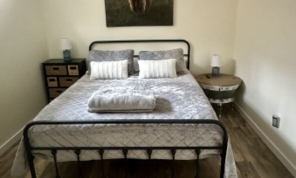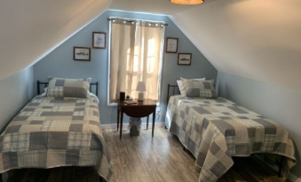 This cabin is 1/2 of a spacious duplex that sleeps 4 comfortably with a queen bed and full bath on the first level and 2 twin beds with a 1/2 bath upstairs. There is plenty of room to add an air mattress if needed.
