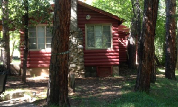 This three bedroom, two bath rustic cabin property lies on the bank of the Ruidoso River with a mountain ridge on the other side. Private location at end of cul-de-sac. Enjoy this fully furnished, well-equipped home as you take in the mountain breezes rustling the tall pines. This cabin boasts a large master bedroom with Queen sized bed and adjoining bath with shower. Two Jack-and-Jill bedrooms, one with twin over full-size bunk beds, the other a twin bed only, share a bath. Relax in our spacious living area (queen sofa bed, if needed) which opens to dining and kitchen areas. Our flagstone patio is a highlight for our guests as they listen to the flow of the river. Take your chances on catching a trout or two, if you like! (Fishing license required 12 and older, not included). A better chance to see wildlife as they stroll through the property is almost guaranteed!