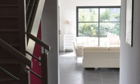 - Living / Dining room: 60m2, beautiful volume, very light, triple exposure. Shabby chic style furniture (grey and white), comfortable buffalo leather sofas