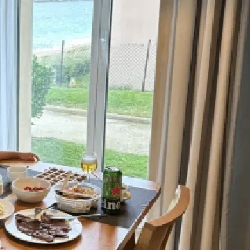 Bright and spacious room. The kitchen was equipped with all the necessary utensils. Detergent for the dishwasher was also provided. We were able to stay in a warm room with heating in the room. The room had a view of the ocean and was very comfortable and spacious. I also enjoyed the pool. Breakfast was simple western food, but local yogurt and lots of bread were served. Next time I would be happy to prepare breakfast in the room kitchen.