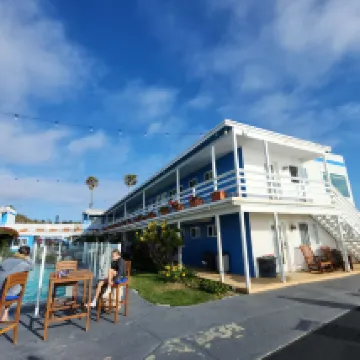 該酒店位置相當不錯,臨聖地亞哥日落懸崖自然公園邊,欣賞落日超棒。酒店內鮮花盛開,還有一個小遊泳池,房間為套房,帶廚房,烤箱,微波爐,餐具齊全……