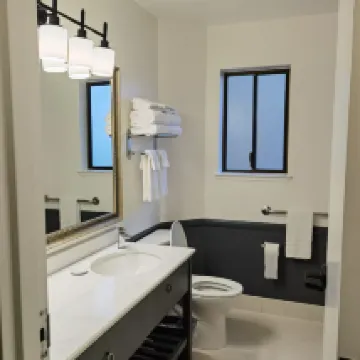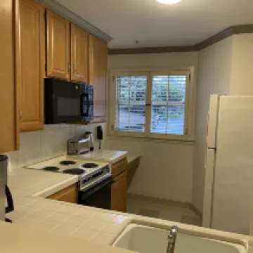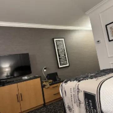 房間挺乾淨,空間也很大,設施齊全。就是感覺剛裝修不久,還有一點傢俱味和木頭味。 吹風機風很大,是最近住過幾家酒店裡最大的,頭發乾很快。 免費停車真的太讚了!可以停到退房當天下午4點,出去玩了回來再開車也來得及!有地面和地下兩個停車場,地下停車場需要刷房卡才能進,無懼砸車風險! 樓道和電梯也是刷卡才能進,滿滿安全感,有點遺憾是沒有洗衣房。 周邊很多餐廳咖啡廳,步行2分鐘左右就有peet's coffee。 如果不想早起,建議晚上掛上免打擾牌子,不然阿姨8點半就來狂敲門問你要不要打掃房間,關鍵她是每個門挨着敲,很倔強。