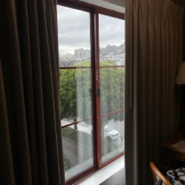 這家酒店很老,但是在舊金山這個地理位置加上這個價格非常不錯了,窗户是封閉的。停車免費,但是車位稍顯緊張。而且個別車位設計的極其不合理,非常容易把車剮蹭了!還好有全險。總的來説還是非常不錯的!