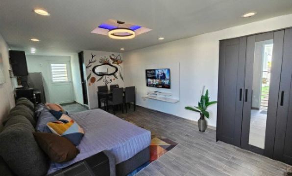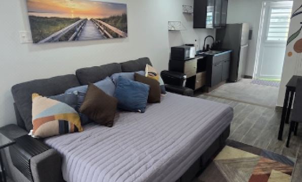 Located in San Juan, enjoy what this 1-bedroom apartment with a share San Juan View Terrace on the third floor with a spectacular view,(the terrace not available from nov. 5 to april 29),Electric Generator 24/7 outdoor surveillance camera, a Volky Van bar, Gas BBQ, hamaca, comfortable furniture, patio chairs, games amenity, has to offer. This marvelous space features a cozy sofa bed, a fully equipped bathroom with a refreshing shower, and essential amenities like WiFi and AC. Guests can relax in this pleasant atmosphere and make the most of their stay. We look forward to hosting you at our place. Airport 10 minutes, beaches 8minutes, Old San Juan 10 minutes, Biggest Malls in Puerto Rico 5 minutes, Walmart 7 minutes. Walking distance, pharmacy, laundry, eating places, groceries, night life, gas stations...About pets:No pets allowed.About checkOut:Check out before 11:00 AM.About children:Children allowed: ages 0-17.About customRules:$50 for every additional guest per night. *The keys most be place in the box when you leave. If you loose them, $150 for the cost of a locksmith..Do not take the bath towels outside the property, there are beach towels for that purpose, do not stain the towels, $25 charge for every towel damage.,The garbage must be taken out in front of the property beside the pole. *No smoking in the property, . There will be a $200 fine for cleaning purpose..About checkIn:Check in after 4:00 PM.About smoking:Smoking is not permitted.About minBookingAge:Minimum age to rent: 19.About events:No events allowed.
