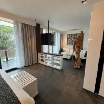 來自住宿之回應: Estimada Señora Medina, Antes de nada, nos gustaría agradecerle que se haya tomado el tiempo de dejarnos esta estupenda reseña sobre su estancia en Mas Tapiolas. Nada nos complace más que saber que nuestros clientes han podido pasar una estancia agradable con nosotros, que han podido disfrutar de nuestras instalaciones y servicios y, sobre todo, que han sido tratado como se merecen por el personal de nuestro hotel, haciendo mención especial a Marco, que es un gran profesional y un artista en la cocina, y a Martin, siempre atento y servicial. Nos agrada saber, también, que les gustó tanto la habitación y les animamos a probar otras del estilo, ya que las masias design son todas diferentes y muy bonitas. Muchas gracias por su visita y esperamos verlos muy pronto. Atentamente, Jose Departamento de recepción Hotel Mas Tapiolas Country Lodge****S