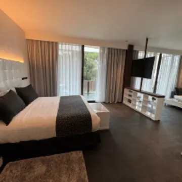 El hotel genial precioso todo pero el restaurante y la comida pésimo pero malo malo no cenamos solo el postre la atención muy buena pero los camareros corriendo sin sentido para nosotros la experiencia se quedó medio mal por la cena ...