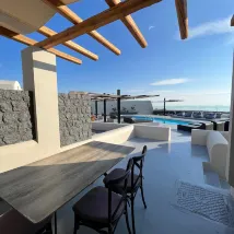 My experience with Abrazo Villas, begun way before our visit. I was looking for a villa so we can spend my boyfriend‘s birthday there and after a long search I found these Villas. We were chatting before I made the booking so that I could ask for a few requests like birthday decoration, a bottle of champagne & a birthday cake for my boyfriend. Everything was settled and we were looking forward to that day. We found the property easily with the Google Maps. When we arrive, Panos was there to welcome us. He was very friendly with us and willing to make our stay unique. He knew that everything was a surprise for my boyfriend & he was very discreet. He showed us around and finally we arrived at our villa which was called “Lava Villa”, an amazing villa, very private that included also a hot tub which was hot for real!! And I am mentioning that cause I’ve been in a few resorts that it’s not! Inside the Villa there was a banner saying “Happy Birthday”as requested and a bottle of champagne with two glasses. The room was fantastic and exactly like the pictures on the internet ( I booked it from the AirBnb app). The next morning they brought breakfast to our room which was fantastic and very simple at the same time, in a picnic basket that included almost everything & also the birthday cake I asked. Everything was absolute amazing and as expected!! And experience unique. I would recommend visiting this place if you’re looking for some special, private and hospitable!!