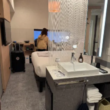 前台很熱心。有免費酒吧可以使用,還可以自己調泡澡球。房間很舒適,體驗感很好。地理位置也很優越,旁邊就是狸小路商店街。
