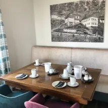 Die Zimmer sind schön renoviert mit modernstem Safe, speziellen Nachttisch-Lampen, Samsung-Flachbildschirm und Geberit-WC… aktuell wird eine Photovoltaikanlage aufgebaut. ☀️ Im Zimmer gibt es eine Flasche Teinacher Mineralwasser. Schöne Aussicht. Parkplätze sind sowohl bei der Pfefferburg als auch neben der Strasse vorhanden. ️ Die Einfahrt zum ehemaligen Kurhaus sollte mit „Achtung gefährliche Ausfahrt“ und einer Temporeduzierung auf der Bundesstrasse beschildert werden ⚠️ Das Frühstücksbüffet ist gut und Eierspeisen werden auf Wunsch frisch zubereitet Tolles Preis-Leistung-Verhältnis für die Region Stuttgart.