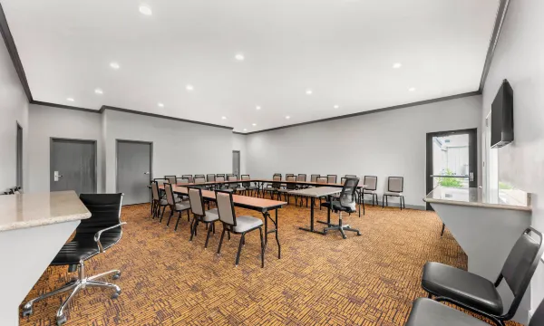 There were many shortcomings. Room itself was acceptable. Bed was comfortable. There was a shampoo dispenser in the shower that was empty. As soon as breakfast time was over, we were run out of the breakfast area. The laundry room door was never closed and it was noisy. TV schedule was torn and damaged. Notepad was used. Microwave turntable didn’t fit properly. The breakfast was missing several items. Thirty minutes prior to the end of serving time, there were no eggs left, no syrup, very little waffle batter. Syrup was still empty on day 2. There were no paper towels in the public restroom. The chairs by the pool were so rusted out that one broke when someone sat in it. Overall for the price, this was less than what we expected.