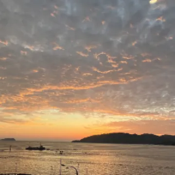 價格還不錯 環境也可以 離碼頭二十多分鐘車程 免費一趟固定班車從酒店送至碼頭 但是隔音效果有點不好 有人在外面走路我的床都在晃 早餐去的晚一點就沒有東西了