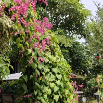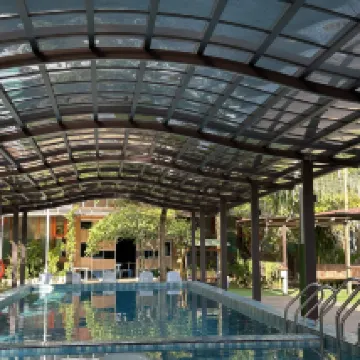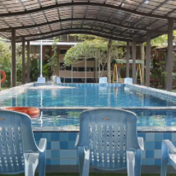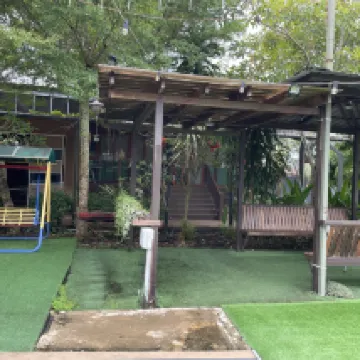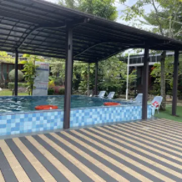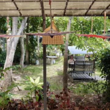 民宿小院兒,熱帶小花園風景,有小泳池,孩子們的最愛!房間設施有些舊。離鎮上有些距離,不過有車可以去鎮上,總體來説適合親子玩樂。民宿不能吃飯有些不方便。