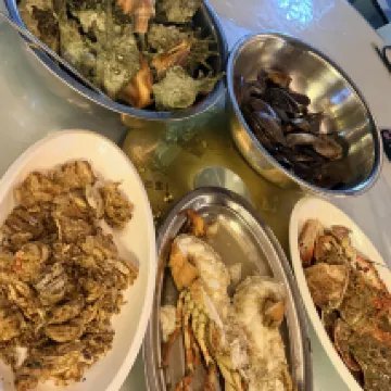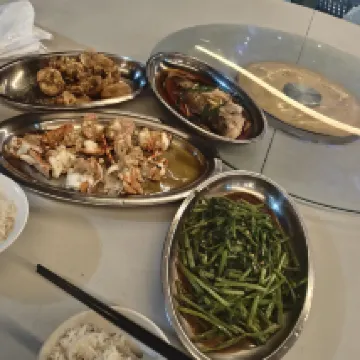 這裏的服務很好,因為這裡有車送我們去海鮮市場,然後可以拿回來加工,加工費比外面的都便宜,5個菜50馬,味道做的也很好