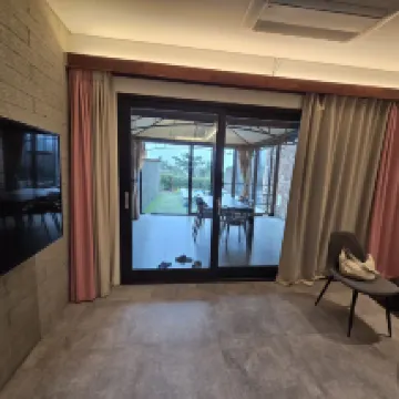 住宿條件不錯,但缺少很多東西。 1. 戶外露台帳篷被撕裂損壞(見附圖) 2. 中央暖氣系統無法調節,空調不工作,看起來也沒有妥善維護 3.不提供浴巾。僅提供手巾 4. 插座數量不足 5. 沒有微波爐