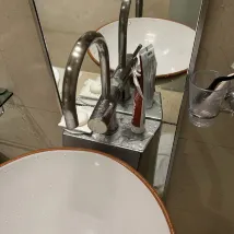 단점: 화장실 세면대가 너무 불편함. 수전과 싱크 사이로 물이 떨어져서 바닥에 다 고이고 미끄러질뻔함. 그래서 어쩔수 없이 수건을 바닥에 깔수밖에 없었음. 욕조쪽에 조명이 없어서 저녁에 샤워할때 커튼 치면 암흑 속에서 샤워해야함.