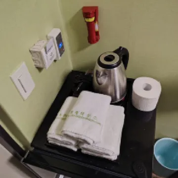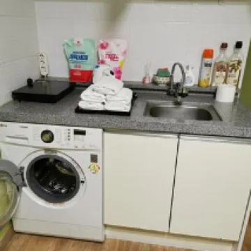 房間裡有洗衣機和爐灶,為您提供便利。毛巾比我們需要的多,這很好。辦理入住時,入口處貼有一張紙,上面寫著如何打開入口門以及如何進入房間,然後您就可以進入了。我可以在無需與任何人互動的情況下退房,所以我沒有遇到任何旅館工作人員,但這不是問題。我想再次使用它。