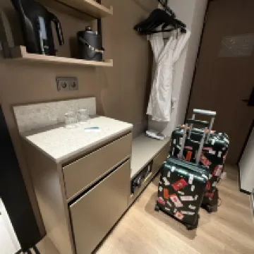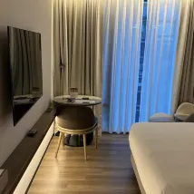 床很大,好像是為三人家庭考慮,但是真的有三個人,基本沒有空間了,沒有地方放大箱子,mini吧有水和飲料,比較貼心。咖啡illy也較少見,總體挺好, 服務:12點正把我的門卡鎖了,我晚12分鐘到酒店趕飛機,不得不來回折騰。雖然是自己的問題,但是稍微人性一點,在check in 時提醒一下,或者延長半小時,更好。 環境:如果是住1-2晚,地鐵,機場班車,周圍GS25都幾步,非常便捷
