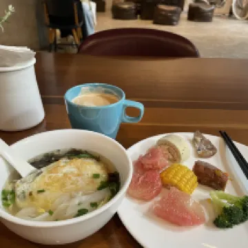 房間確實沒有很大,。進門右邊就是洗漱台,但是床超級大!感覺都可以睡下3個成年人。 因為我的房間再入口進來第一間,確實會能聽到路過的人動靜。但是我睡的也比較晚所以沒怎麼影響 早餐有可以自選的部分:餛燉、麪條、煎雞蛋or煎雞蛋餅可以下樓後詢問店員。還有一些自助部分,沒有特別多 但也一樣都有一點。 一人住的好處就是可以喝兩杯酒,喝完微微上頭剛好入睡。(紅色那杯着實有點甜,要是能改進一下下就更好) 整體入住還是很滿意!謝謝
