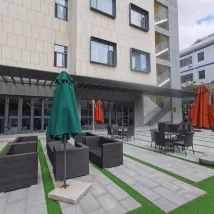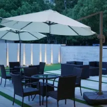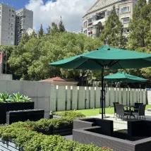 Clean and quiet rooms. The outdoor seating area is very relaxing and lots of umbrellas to keep ypunout of the sun. Walking distance to the foreinger area and lots of food options there. There is a Tim Horrons that is a 2 minute walk away