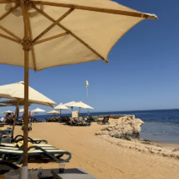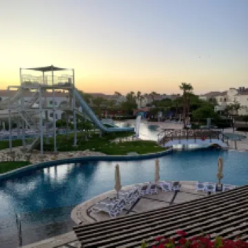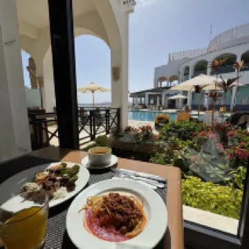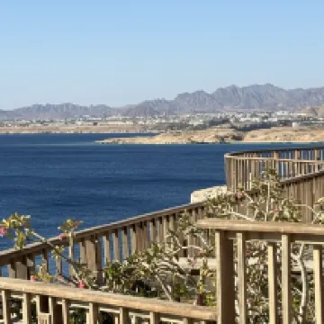 預訂起來完全不用擔心。我們入住時正值四月的旺季,幾乎客滿。所有客房都是私人別墅,私密性極佳。餐廳隨時供應新鮮烹製的燒烤美食,工作人員處理大量客人的速度也令人印象深刻。 自助餐非常美味——絕對高於埃及的平均水平。如果您喜歡潛水,甚至不需要乘船。飯店的海灘上就有一個免費的珊瑚保護區,您可以在那裡看到珊瑚、水母、色彩繽紛的魚類,甚至還有成群結隊的魚兒在您周圍遊動。飯店也有自己的潛水中心,方便您進行深潛。 別墅房間外就有一個小型水上樂園,飯店所有酒吧全天候供應飲料。身為亞洲遊客,我們沒有感受到任何歧視——服務雖然不是太熱情,但絕對尊重且中立。 懸崖邊還有一個無邊際泳池,非常適合拍照,度假村也有自己的購物街。