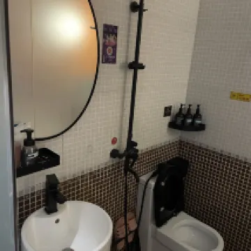 這是我住過最差的酒店,沒有之一了,衞生間沒有乾濕分離就算了,連地墊都沒有,洗完澡出來都滑倒了,洗手枱的水比洗澡的水還大,就離譜。房間也非常小,衹有一個垃圾桶還是在衞生間的,且有蟑螂!!投影儀歪了也是不能調的😅