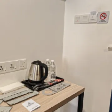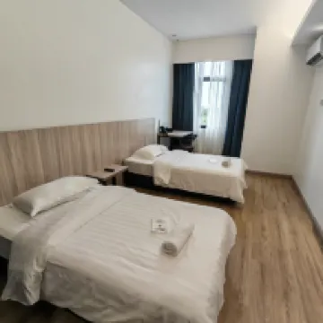 The location is away from the central market but it is alright if you have car. If you were a light sleeper, it might be not suitable for you as we can hear the noice. Overall is okay. And the bright side is that they have many plug points in the room!