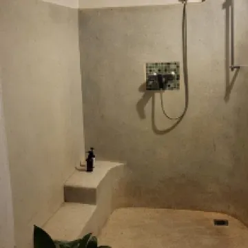 I recently stayed for 3 nights at Maison 557. I was offered a complimentary upgrade to a deluxe room, which is appreciated. Whilst the shower is outdoors on the deluxe room, it is at the back of the room, and is entirely enclosed by a wall, so privacy is maintained. The room is of a good size and the air conditioning is effective. A kettle is provided in the room. There is good, fast wifi. Any staff I spoke to were proficient in English. There is a good choice for breakfast, and breakfast is filling. Staff from the adjoining restaurant are happy to bring drinks to your room to enjoy at your outdoor seating/table. There is security overnight at the property. The staff are very helpful - A minor issue with the lock on my door was easily fixed within 15/20 minutes, and they were also happy to organise a tuk-tuk driver for me. Overall, a very good experience and I'd gladly stay again.