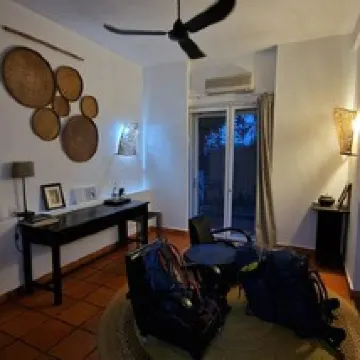Hôtel très bien situé ds Siem Reap. Accueil souriant et chaleureux. Chambre confortable avec, en bonus, une grande douche extérieure. Petite piscine bien agréable après la visite d'Angkor sous le cagnard. Bons petits déjeuners et, sur les 4 jours, un excellent petit déjeuner français,. Au total séjour très bon séjour. Merci à toute l'équipe discrète et aux petits soins. Nous recommandons.