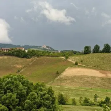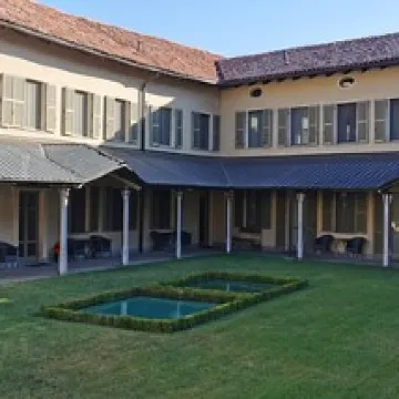 Dans un tout petit village Selonghello sur une colline avant la plaine du Pô, , une grande bâtisse peu engageante avec un parking, ascenseur jusqu’au nveau 0. Une charmante jeune femme nous accueille en français et personnalise notre séjour. Accompagnement jusqu’à la chambre. La cour intérieure et les bâtiments comme un cloitre sont magnifiques et passage couvert (car il pleut fort). A côté beau jardin, mais on ne n’en profitera pas ni pour prendre l’apéritif. Belle chambre au premier avec un plafond vouté peint par un artiste un peu original. Coin salon avec vue sur les collines et un village perché.. Petite salle de bains mais finalement fonctionnelle. Wifi de bon débit. Au sous-sol grande piscine intérieure chauffée, jacuzzi, hammam et sauna. Apéritif dégustation vins locaux (Barbera et Grignolino) avec saucisson et crostini. Diner dans une salle intime (à noter qu’il faut apprendre à connaitre les différents niveaux d’étages dans l’ascenseur entre le -3 et le +3). Salade russe ou vitello Donato puis raviolis épinard parmesan ou ravioles au vin rouge. 1 Très bon petit déjeuner. Prix très honnête pour la prestation