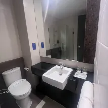 Really liked the hotel — super clean and modern. It was also quiet and peaceful. In the room, there was a huge TV with free Netflix.