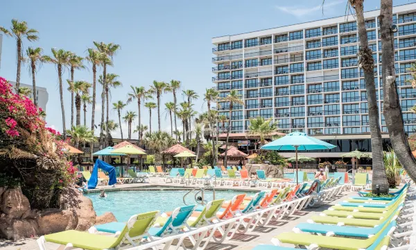 My husband and I stayed at the hotel for the weekend. We chose this place because it's got a nice location on the beach and a nice lounge with live music we enjoyed. The pool looks really nice at night so we figured it would be great during the day too but we were wrong. When we checked in the room we got with a beach view was at an angle which I thought was weird but ok. I had brought a big suitcase and there was no elevator, I asked for a bottom floor they told me they were all booked. Fine. We got 2 wristbands they said any guests we have would need to get one to be on the property. We figured it would be ok and thought nothing of it. Walking to our room the building looks very old and very worn out. The ice machine in our section was broken and rusted so every time we needed ice, we had to walk super far and down the stairs. There is no microwave in the room. The room was decently clean but you could see dust on the walls so it wasn't really clean and the couch had stains all over it. The hook to hang your bathrobe in the bathroom was broken. It just was not great for the price I paid. The next day, the kids came by to pick us up to go out on the town, they were threatened by security that their car would be towed even in they were there for a bit to wait for us to change so we had to go get them wristbands even though they were not staying or hanging out on the property so we did. Walked a super long way with 3 kids in their 20s and one small one. The front desk said not to worry about the car but they could only give us 2 wristbands and the rest is another $20 each. Ok. Fine. I'm pretty annoyed at this point. So we go out for the day to places away and come back later, my son gets hassled again even with a wristband by the security. They leave for the night and we stayed. The lounge is nice we normally have no issues with the music but this time the keyboard player makes a joke I did not appreciate about marrying a Mexican girl, then he says, oh no I would NEVER do that. That felt a little ****** since he was African American. Anyways, they had an after hours bar and the bartender had a bad attitude was totally not friendly or welcoming at all. Just would never stay here again, it's not worth the price for all the hassle and it's not even kept clean there's too much old or beat up furniture. The pool looks nice at night though like I mentioned earlier. They don't have free breakfast or a cocktail hour.