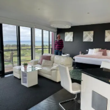 A glorious way to wake up from a wonderful sleep with views over the Nut. A beautiful apartment with lots of Gluten free provisions adding to the whole experience for us. The location is a short drive to the beach with walking/bike tracks enabled us to explore the streets and extensive shoreline, before returning to the apartment to enjoy a relaxed 11am checkout. Now sharing photos with friends and family hoping they will come stay too.