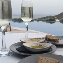 Gestopt om ‘s middags een aperitif te drinken aan de bar van dit mooie hotel, We werden zeer vriendelijk ontvangen door de hotel manager Lukas , de man gaf zeer goeie tips over Naxos en andere eilanden. Hij overtuigde me om ‘s avonds te gaan dineren bij hem, daar hij mij vertelde dat zijn kok onder andere een uitstekende tartaar van tonijn kan bereiden. Ik was niet ontgoocheld van de tartaar , deze was levende vers en perfect gekruid . Ook een dikke proficiat voor de gegrilde zeebaars . Ook een dikke duim voor het personeel die ons bediende, zeer vriendelijk en professioneel . Ga en u zal niet ontgoocheld zijn .