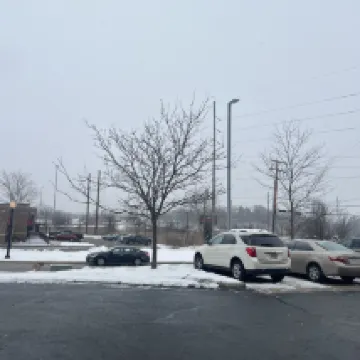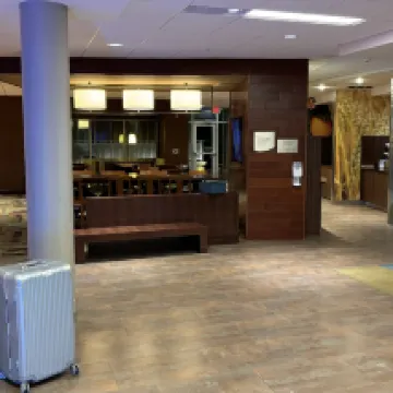 酒店很新 留機場開車30分鐘左右 因為頭一天到的很晚,起晚了沒吃早餐 箱子丟了幾天,剛送到. 下了大雪 下次還會住這家的