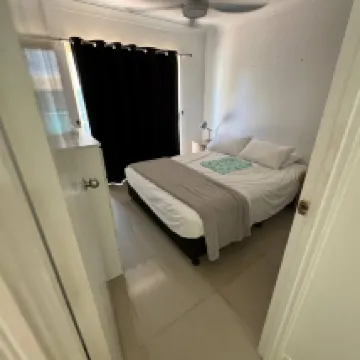 這家飯店非常友善熱情,飯店前面有游泳池和水療中心,步行 15 分鐘即可到達海灘,但天氣確實很熱。我們預訂的房間只有一張床,我們預訂的是兩張床,他們告訴我們沙發是一張拉出式沙發,我們很不高興,但我想它很舒服。牆壁上有一些凹痕和刮痕,房間可以做一些事情來使它更好,並且可以打掃得更好一點。房間裡確實有洗衣機和烘乾機,這是一個優點,但即使我們把衣服放在那裡一個小時,烘乾機也烘乾得不好。無論如何,可能不會再回到這裡。