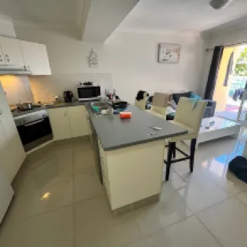 優秀的自助式公寓,配有所有居家舒適設施,包括洗衣機和烘乾機以及大型陽光露台。館內設有游泳池和按摩浴缸。電視有很多頻道,地下室有停車場。地理位置優越,非常安靜,距離海灘僅 15 分鐘步行路程,距離主街 5 分鐘路程,那裡有酒吧、餐廳、超市和酒類商店。接待處不是工作人員 24 小時或週日非常好的 vfm。