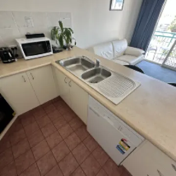 絕對完美的小家外之家。自助式公寓配備您舒適住宿所需的一切。很棒的游泳池和按摩浴缸,一塵不染。位置安靜,距離衝浪者天堂的“明亮燈光”足夠近,但又足夠遠,可以避開人群。 附洗衣機和滾筒式烘乾機,可存放節慶服飾。友好的接待人員。還具有為那些出租汽車分配的地下安全停車場的優勢。 對於這個位置來說價格非常合理。