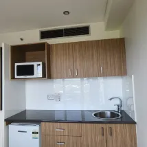 The location was very near the stadiums, which was where we were headed, therefore very convenient. There's mcdonalds and subway downstairs, too. No nearby convenience store, the nearest is an IGA about 10 mins walk. Almost no amenities inside the room - except the towel. But you can ask for slippers, water from the friendly reception. If you use tray service (get something delivered to your room), thats $5. So i suggest you get what you need from the recep and they are more than happy to assist.