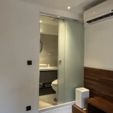 我們住的是雙人房,窗戶在浴室。房間配有夜燈和國際插座,這點很不錯。 提供室內塑膠拖鞋,公共區域禁止穿著戶外鞋。 清潔度高於平均水平。雙人房提供浴巾,如果提供手巾就更好了。