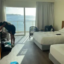 飯店人員服務都很棒,一樓就有星巴克。 海景房視野很漂亮,坐在房間裡即可看到一望無際的海邊。(還可以看到隔壁飯店設施XD) 稍微可惜踏入房間就有看到黏在地上的紙屑,清潔度需要在加強一點。以及房內床頭板些許老舊(上面已有斑紋)、電視非智能電視,遙控器沒有選項可以點選連YT。
